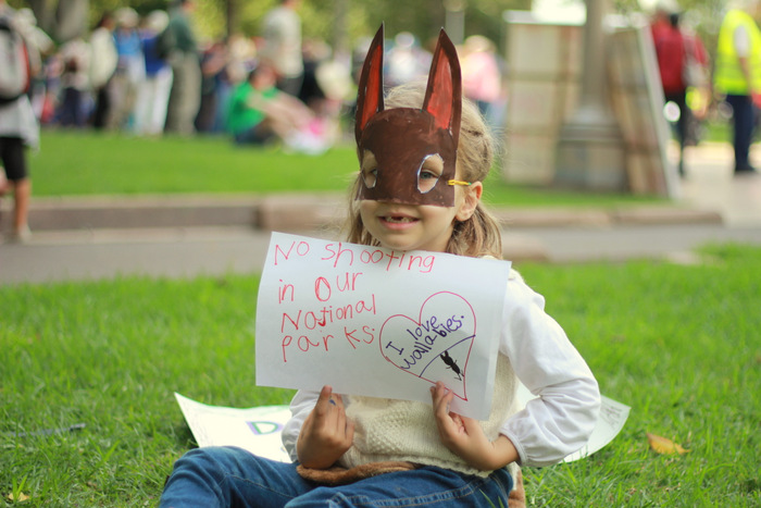 I would love to see the federal government act now to ensure protection of our national parks. The NSW government's plans to allow hunting in National Parks deeply concern me. My 6 year old daughter is also concerned by these moves and chose to accompany me on a recent No Hunting in National Parks rally in Sydney (image attached).
