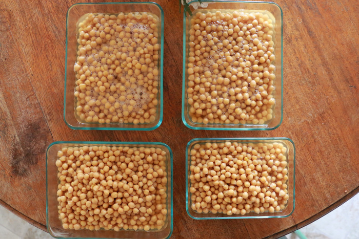 After at least eight hours, drain away excess water, rinse, and then drain again.
