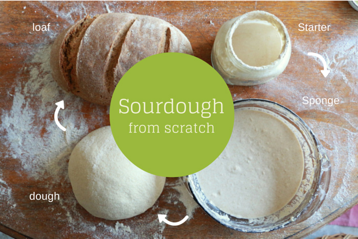 To create your own sourdough starter from scratch, mix two cups of flour and 1.5 cups of warm water in a large glass bowl. Cover the bowl with netting and leave outside or on the kitchen bench with the window open.