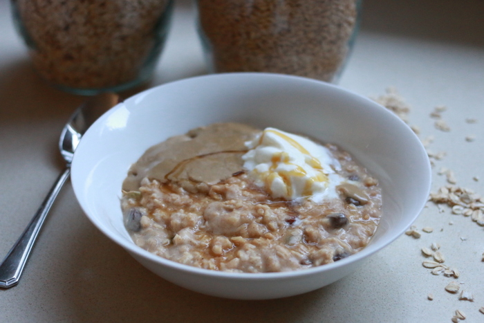 Other healthy options include fresh fruit, stewed fruit, butter, ghee, cream, dairy or nut milks, molasses, maple syrup, or coconut flakes.